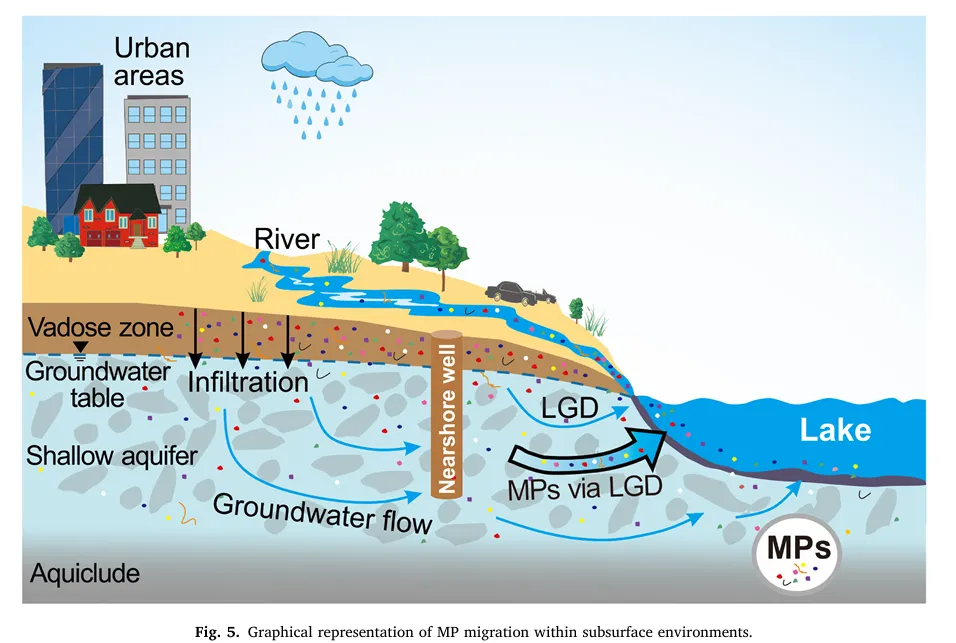 已有研究表明,微塑料可通过包气带垂向渗透进入浅层含水层,并随地下水流路径发生侧向迁移;粒径仅1–5微米的微塑料颗粒在浅层冲积含水层中的迁移性甚至超过部分保守性溶质,具备在含水层中长距离迁移的潜力。