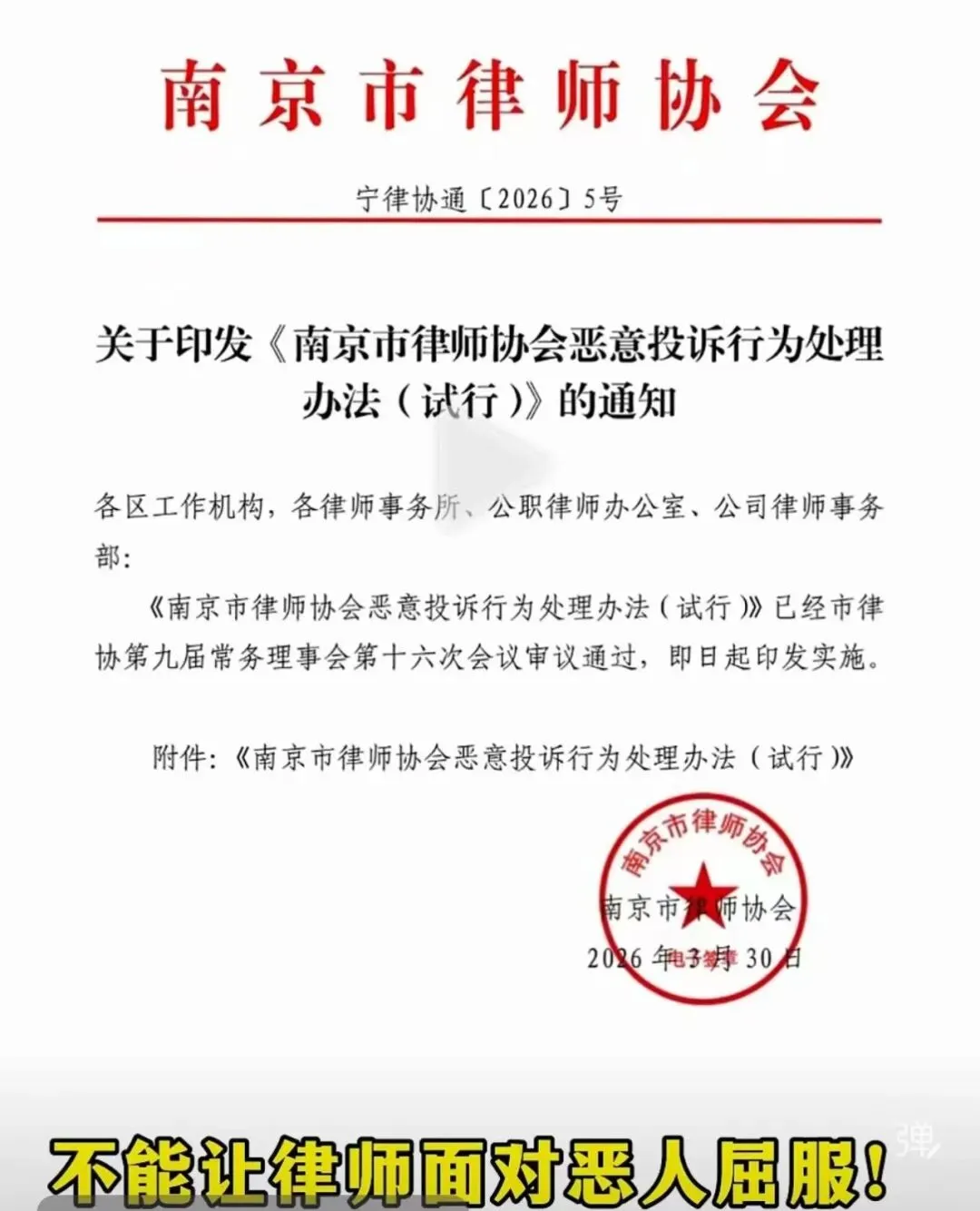 被认定恶意投诉?南京律协直接上“手段”,绝不姑息: