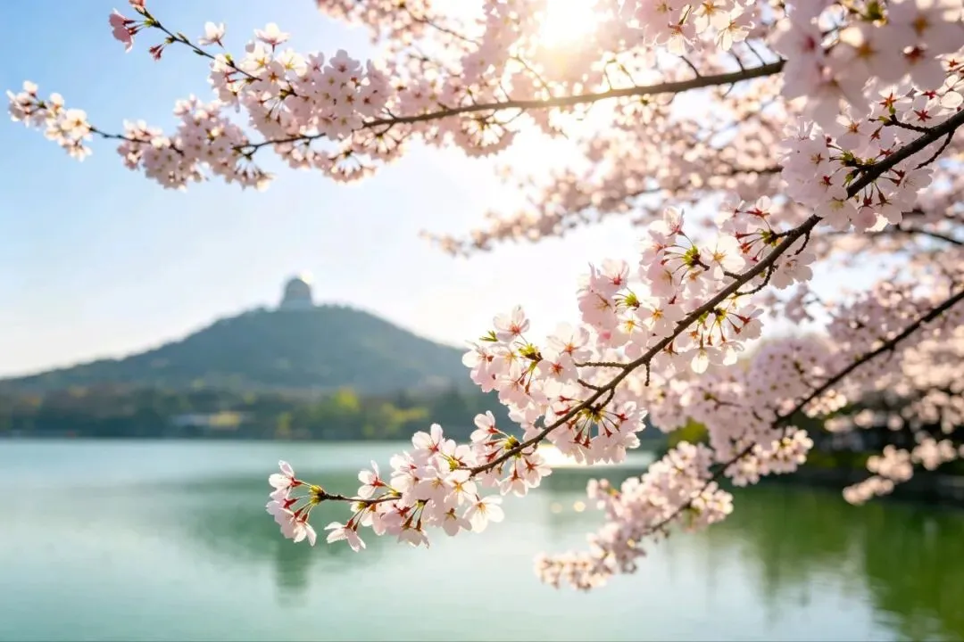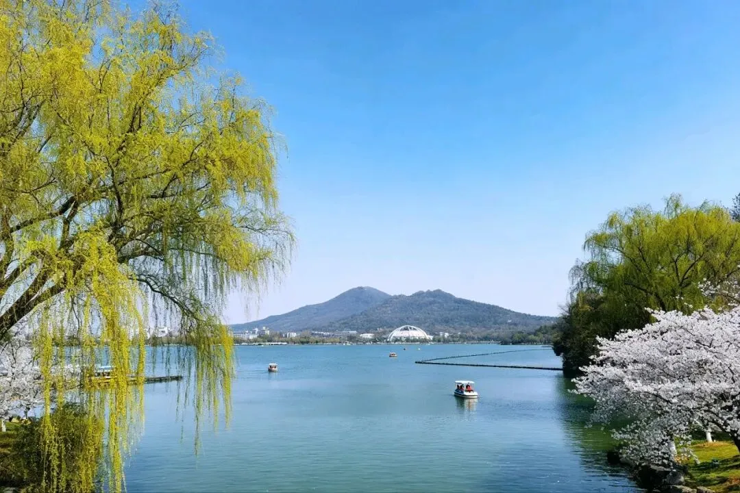 湖是陡然出现的。春日的湖,清澈中泛着淡绿,远处的紫金山淡淡的,只一抹青痕,山顶的天文台圆顶,在日光里亮了一下,又暗了。近处是樱花,满树的樱花,开得正盛。那花是粉白的,薄薄的,挤挤挨挨地缀在枝头,像一群叽叽喳喳的小姑娘,争着抢着要说些什么。风一来,便有三两片花瓣飘下来,悠悠地,打着旋儿,落在我的肩上,落在草地上,落在湖水里。湖面上漂着一层花瓣,随波流着,像千万只小小的粉色的船。