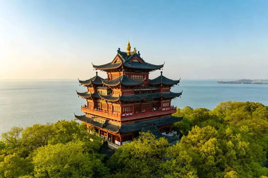 梁洲是五洲中最大的,也是古迹最多的地方。洲上有览胜楼,飞檐翘角,登楼可望全湖。楼前有两株老银杏,极粗,怕要两三人合抱。此时的银杏,叶子还是嫩的,浅绿浅绿的,像刚从水里洗过。