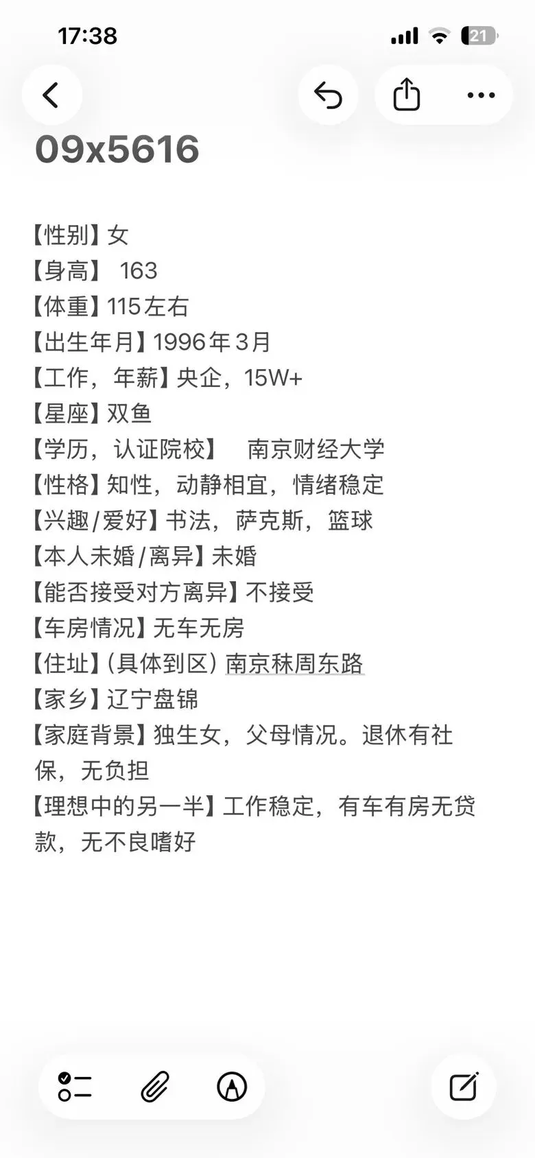南京相亲丨98年,女,身高168,本科,南京本地人,三口之家,会计工作