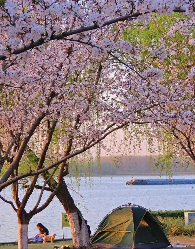 不收钱、不预约、不限流,山、水、城、林、花全齐活。与其在鸡鸣寺看后脑勺,不如来这儿独享一整条江的樱吹雪。这地方现在还算南京人的私藏,去晚了怕是连共享单车都抢不到。