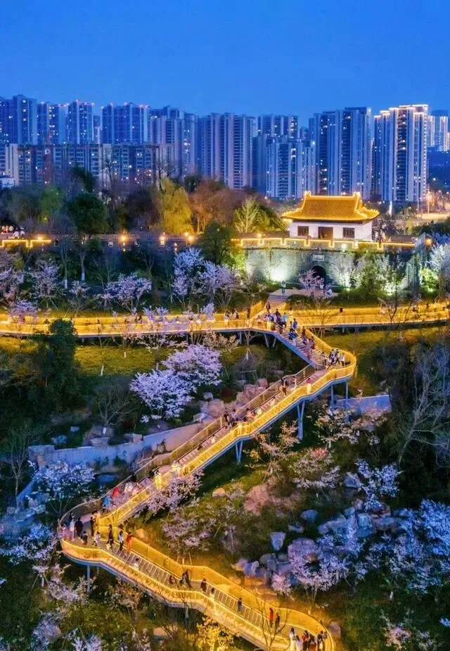 千万别看完白天就撤。这两年新上的亮化工程,晚上六点半到九点,暖黄投光灯往树冠上一打,花瓣透着光,倒影在长江里碎成银河。摄影党记得带长焦,把樱花当前景,后头压上长江大桥的钢桁架,或者抓一艘穿行江面的渡轮(通常是宁浦线),工业硬核配春日柔软,出片直接封神。