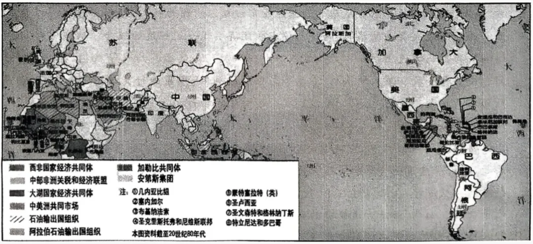 15.某历史学习小组在探究二战后经济发展时找到了以下示意图(图2)。该图可直接用于研究