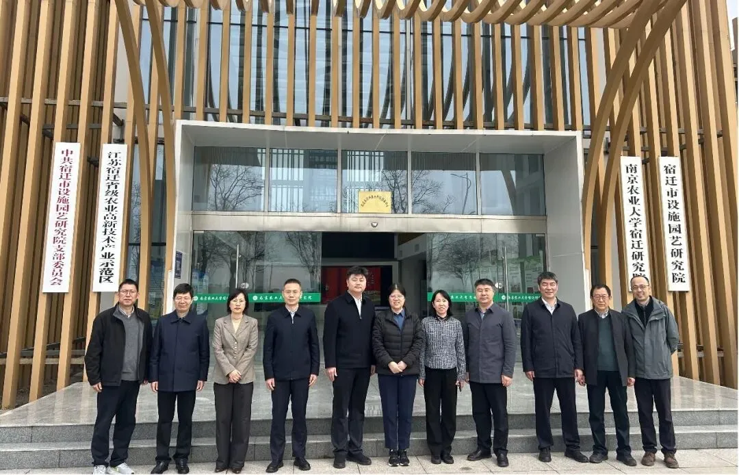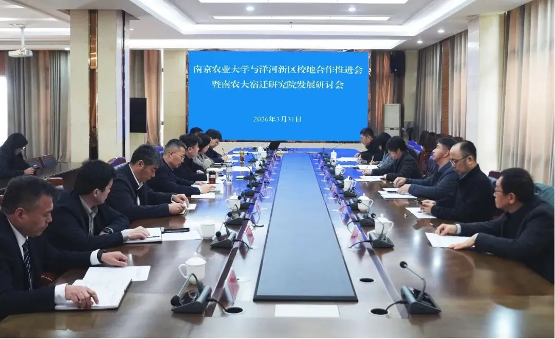 2026年3月31日,南京农业大学党委常委、副校长冯淑怡,南京农业大学社会合作处处长许承保,南京农业大学园艺学院党委书记吴彦宁,南京农业大学园艺学院副院长陶书田一行莅临我院调研校地合作进展并参加南京农业大学与洋河新区校地合作推进会暨南农大宿迁研究院发展研讨会。宿迁市农业农村局副局长周铭敏,宿迁市科学技术局副局长许有恒,洋河新区社会事业局局长罗寒柏,仓集现代农业产业园党委书记丁波,社会事业局副局长苗道平,宿迁市农业农村局科教处副处长王雅倩,宿迁市科技局农社处副处长周同柱,江苏富江农业董事长金殿成,我院首席专家郭世荣,院长熊爱生等相关人员陪同参加调研和座谈。洋河新区党工委副书记姜海青主持座谈会。