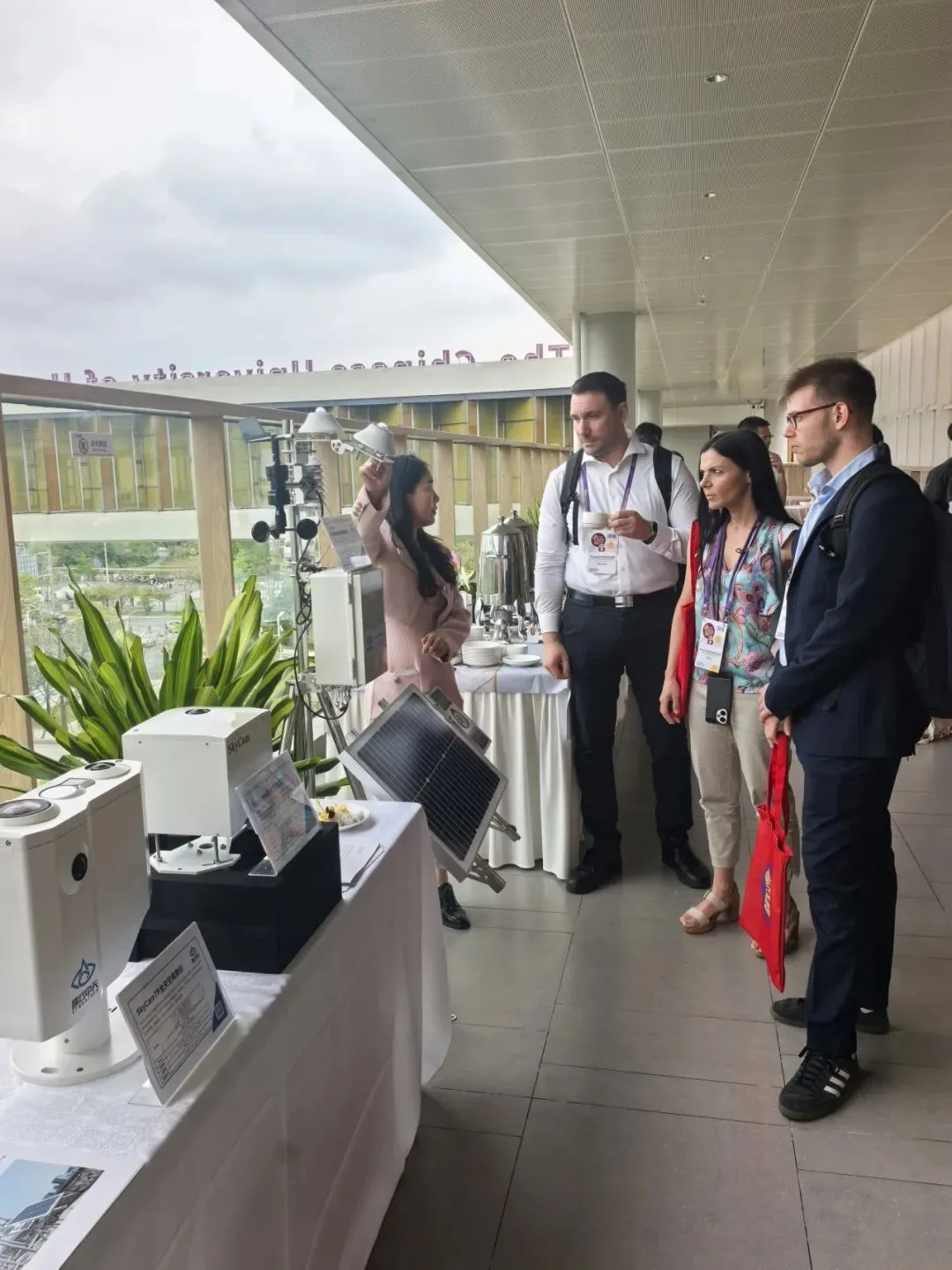大会期间,旗云中天展台聚焦 "专注数据,赋能预测" 的核心主题,集中展示了高精度光伏环境监测站、Class A 级太阳总辐射计、光伏组件积灰传感器、可见光全天空成像仪与红外 + 可见光全天空成像仪等核心硬件设备,相关设备凭借高精准度的监测性能、稳定可靠的户外适应性、全场景适配的技术特性,吸引了众多与会专家、学者及企业代表驻足咨询、深度交流。现场团队围绕人工智能驱动的能源与资源预测、能源互联网与综合能源系统、提升能源系统韧性的 AI 技术等分会核心议题,详细讲解了高精度气象数据在光伏 / 风电功率预测、电力交易、电站智慧运维、综合能源系统优化运行、虚拟电厂调控、电网频率稳定、需求响应潜力评估等场景的关键作用,分享了公司产品与服务在国内外新能源电站、智能电网、数据中心能源管理等项目中的成功应用案例,充分展现了气象科技与智慧能源深度融合的实践价值。