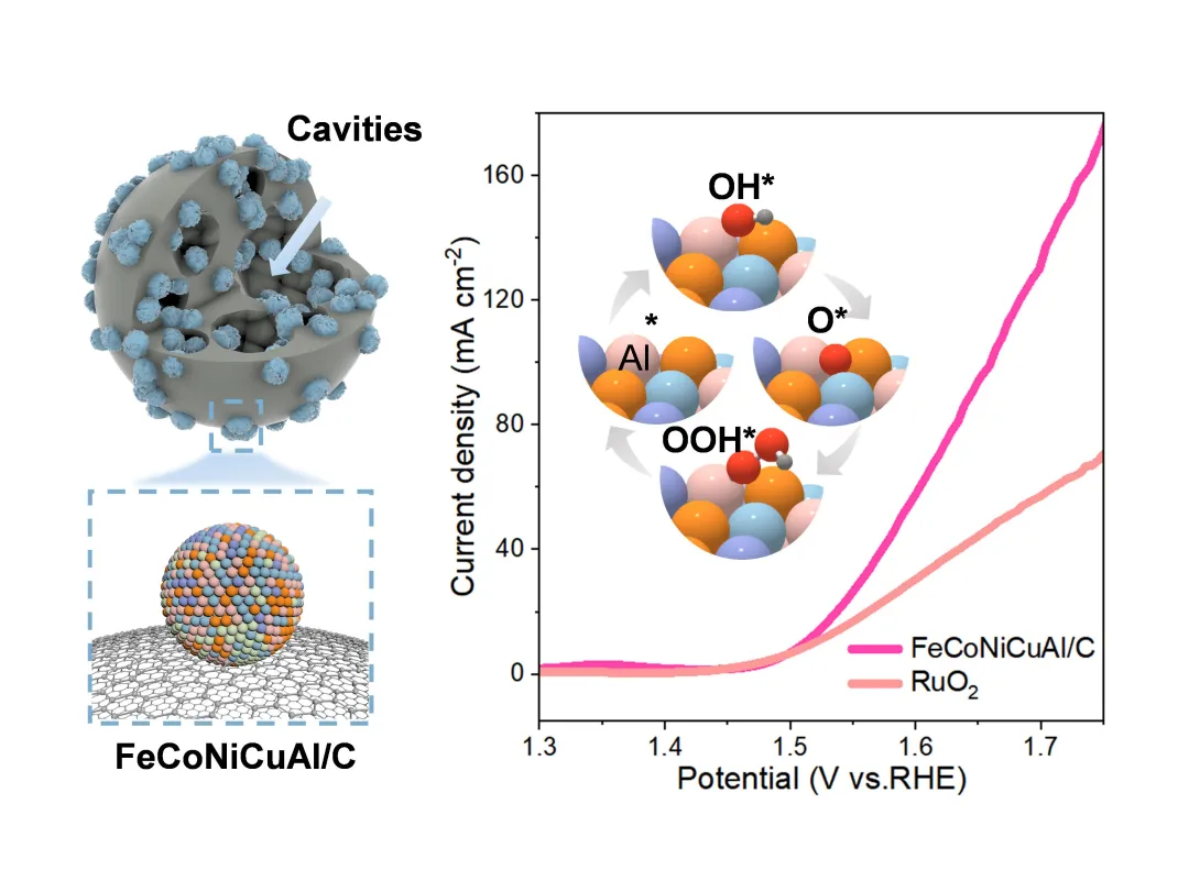 高熵合金(HEA)因多元素协同效应和可调的电子结构成为有前景的非贵金属OER催化剂,但如何同时实现高活性位点暴露和优化电子结构仍是难题。