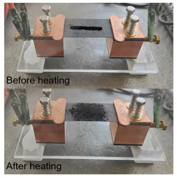 采用碳热冲击(CTS)技术,将等摩尔Fe、Co、Ni、Cu、Al氯化物前驱体与炭黑混合,在氩气气氛下施加90 A/32 V脉冲电流,于毫秒时间内加热至约1273 K(升温速率~10³ K/s)。金属氯化物快速分解释放Cl₂等气体,引发"爆炸式"膨胀,一步形成层级多孔碳纳米反应器并均匀嵌入FeCoNiCuAl HEA纳米颗粒。