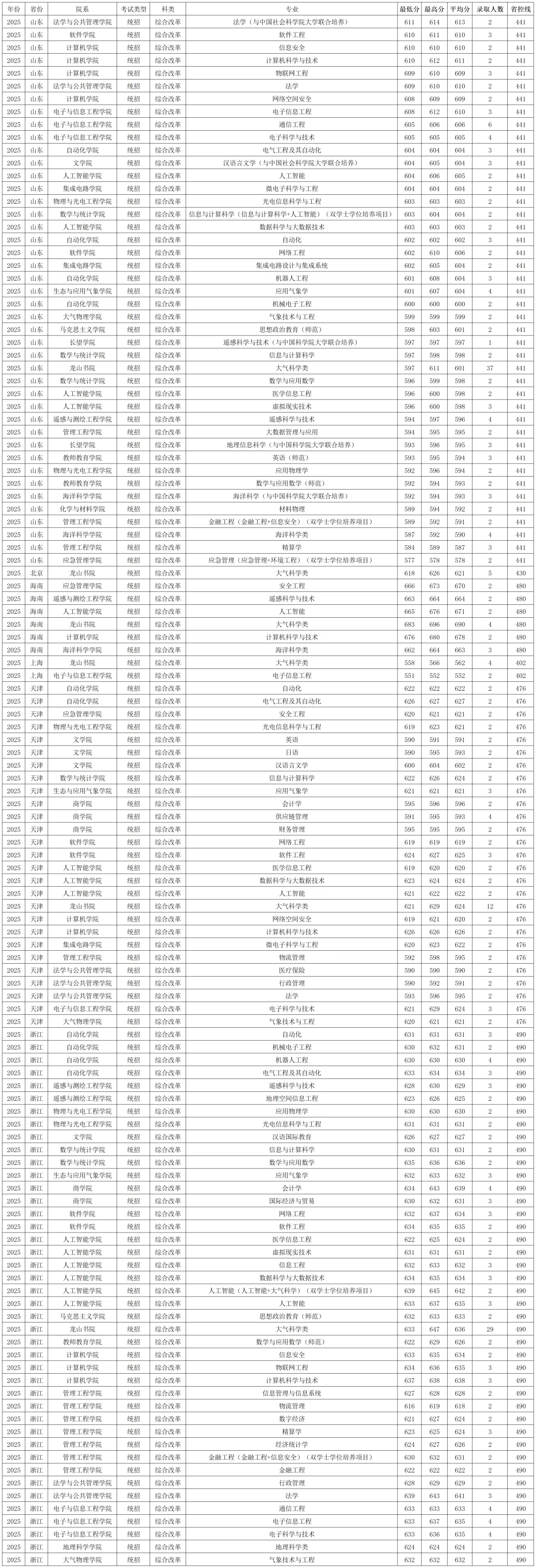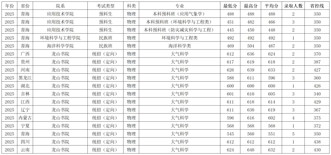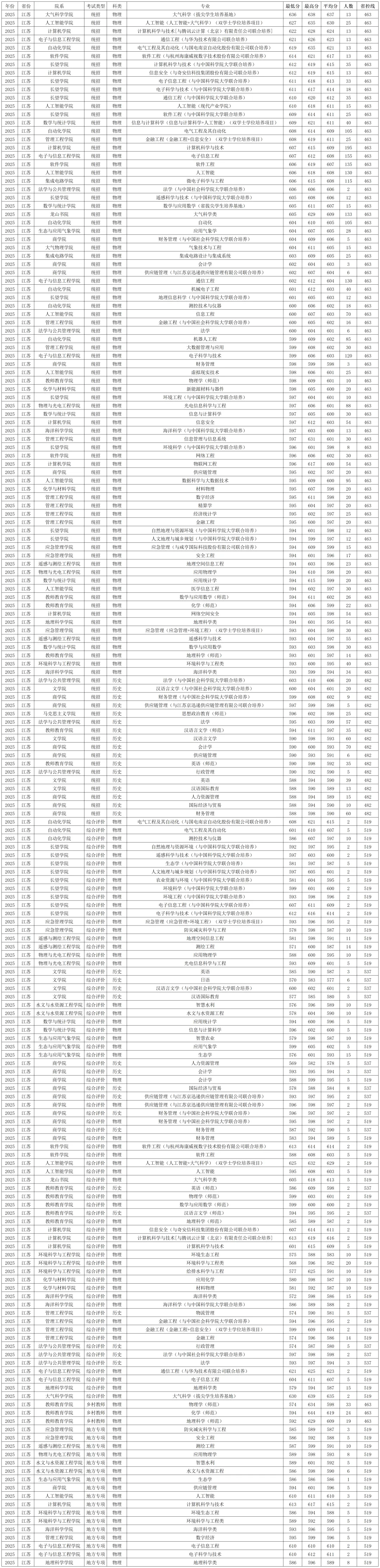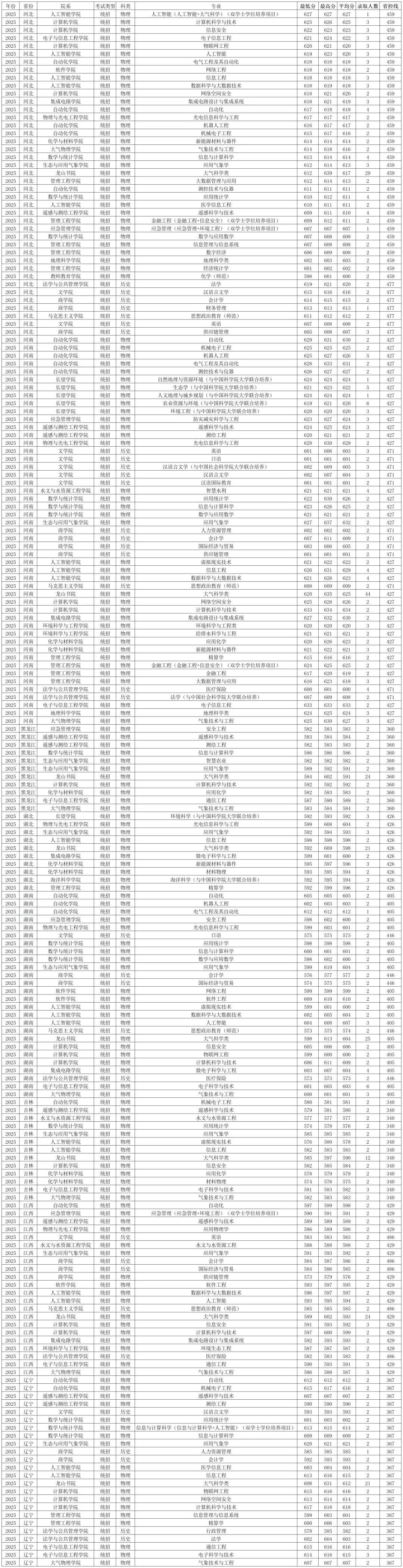 南京信息工程大学2025年预科、民族班、定向在各省各专业录取分数线