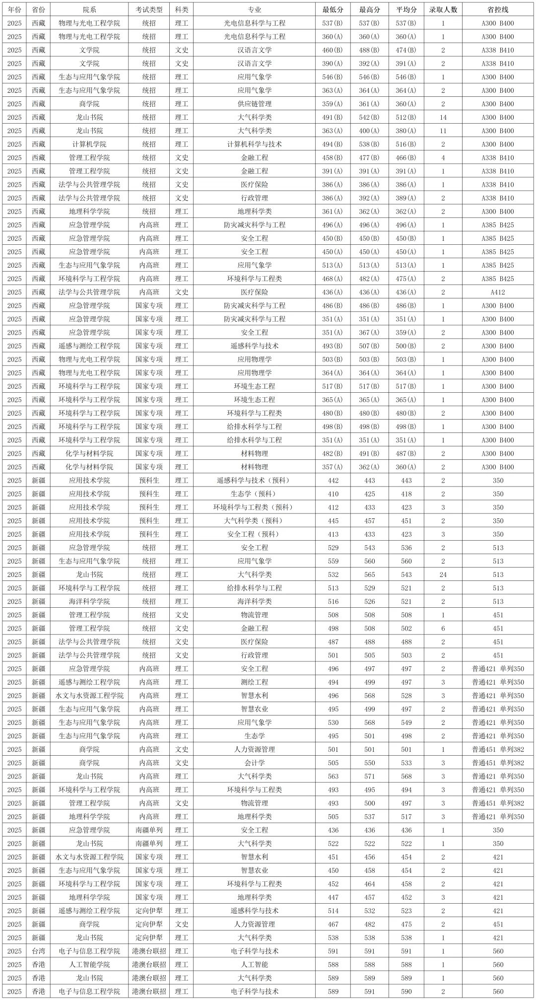 南京信息工程大学2025年在西藏、新疆各批次各专业 录取分数线