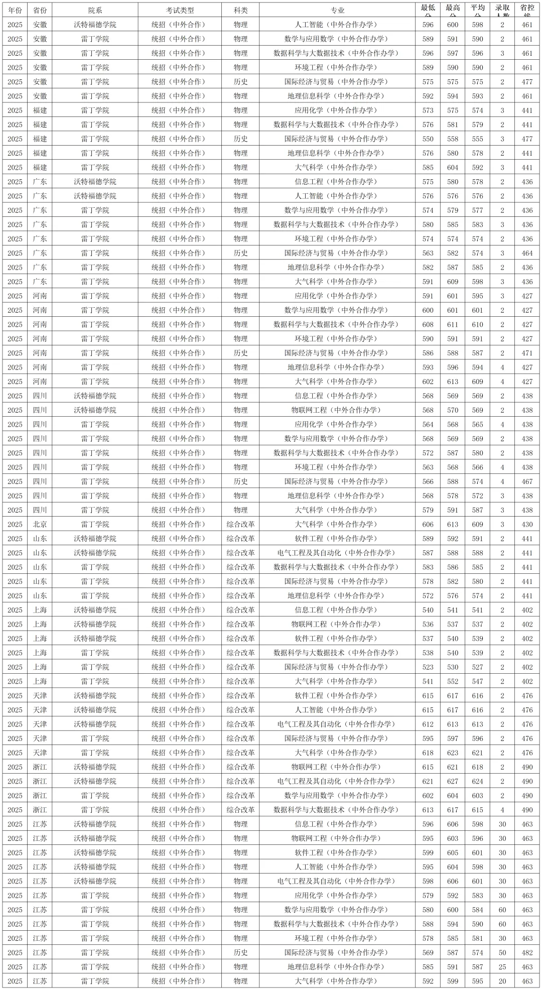 南京信息工程大学2025年中外合作办学在各省各专业录取分数线