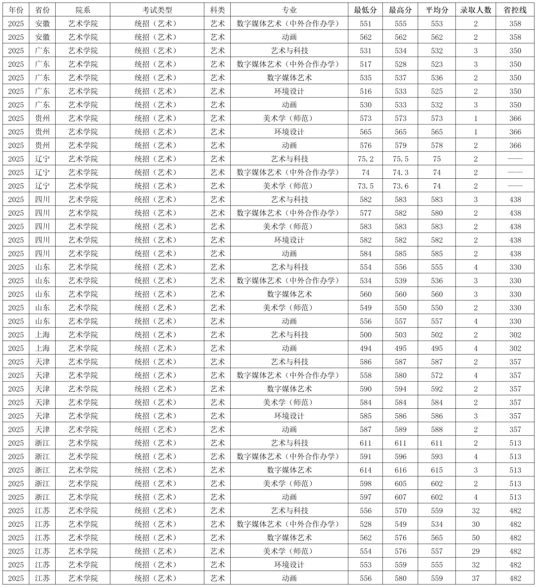 南京信息工程大学2025年艺术类在各省各专业录取分数线