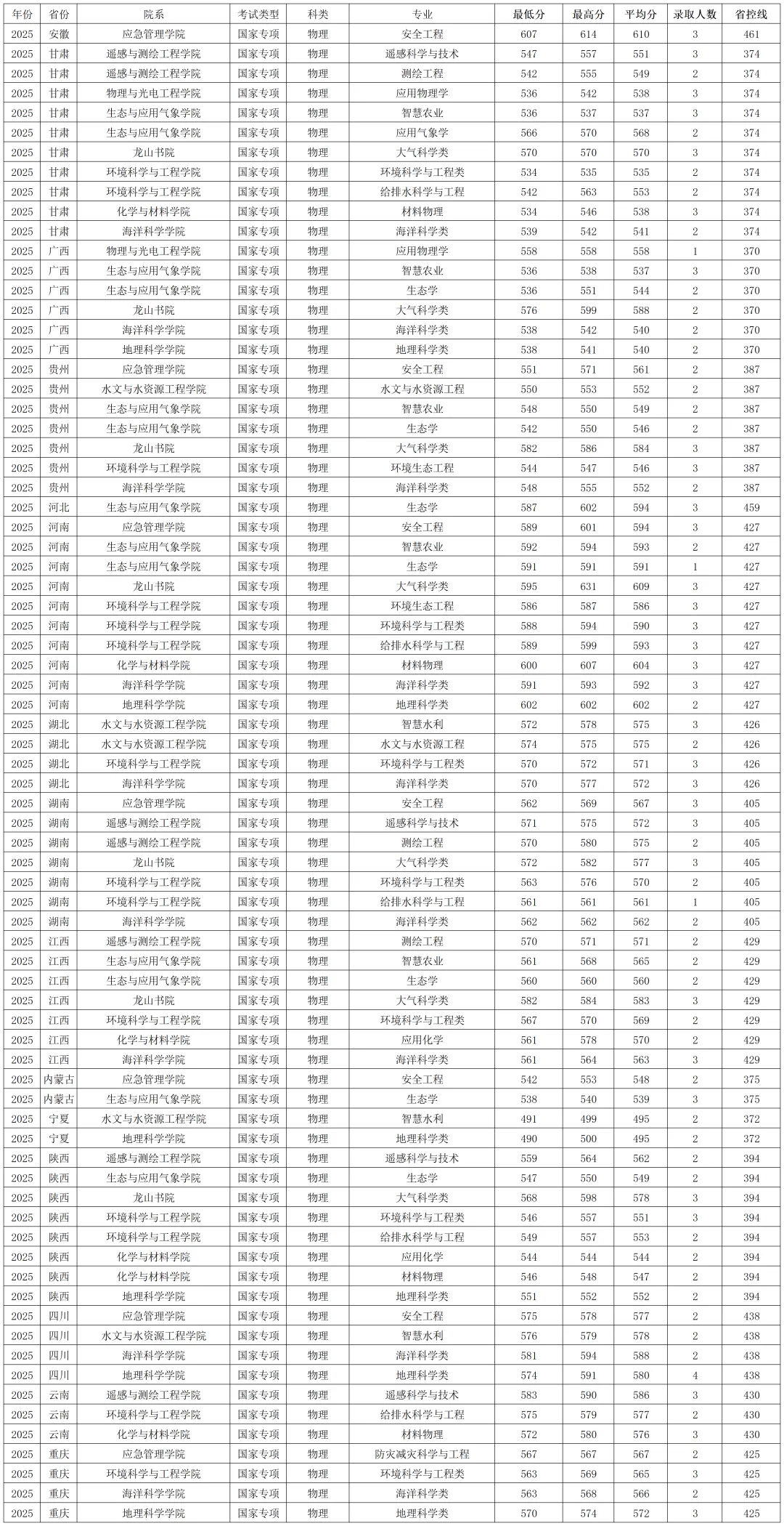 南京信息工程大学2025年国家专项在各省各专业录取分数线