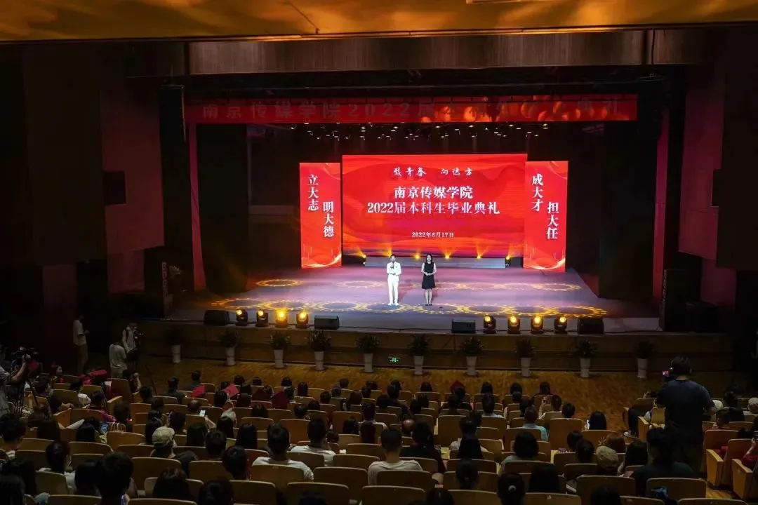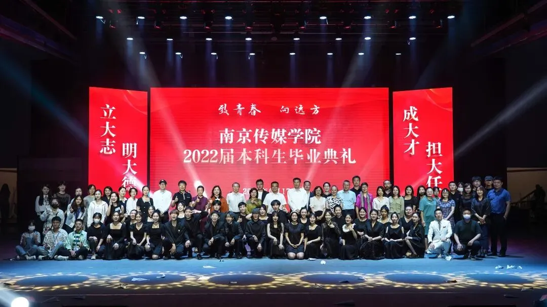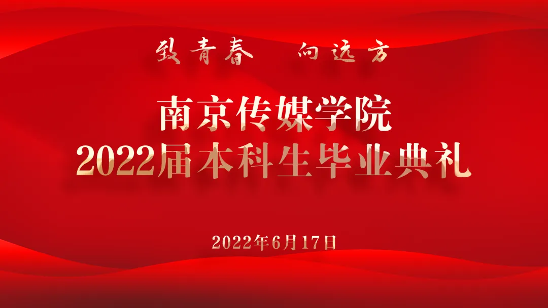 6月17日上午,以“致青春 向远方”为主题的南京传媒学院2022届本科生毕业典礼通过线上线下同步的特别方式,在学校实验剧场隆重举行。