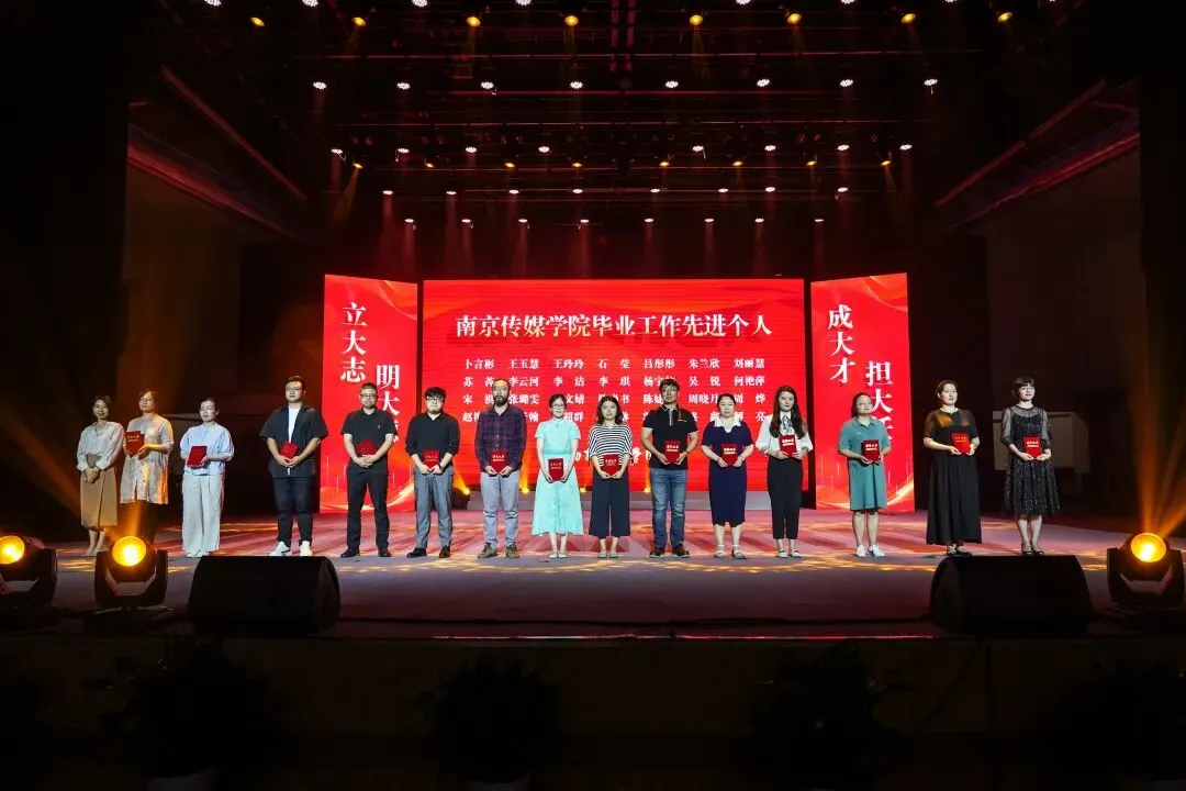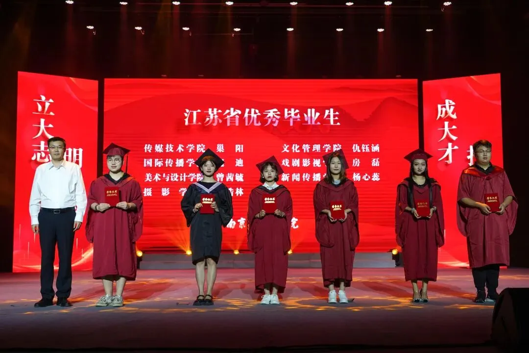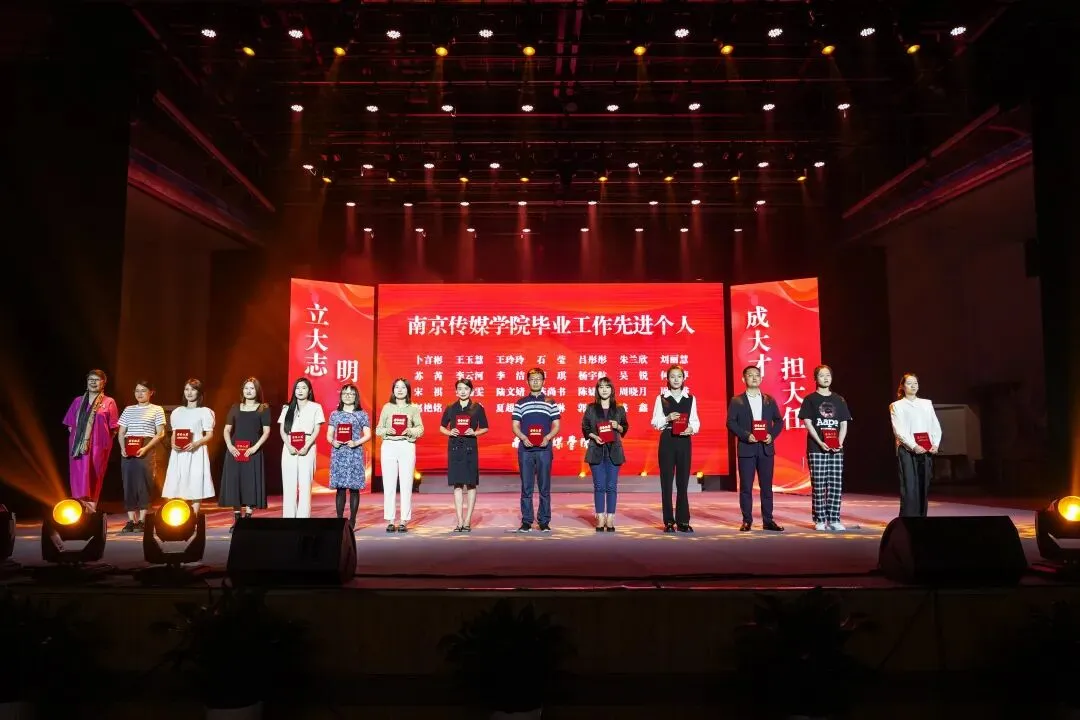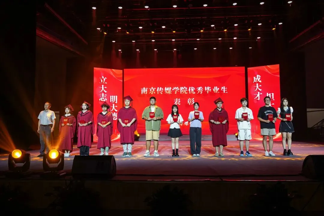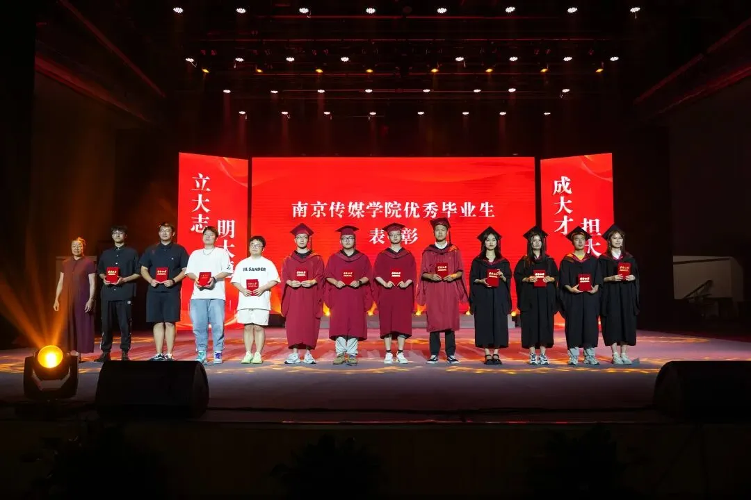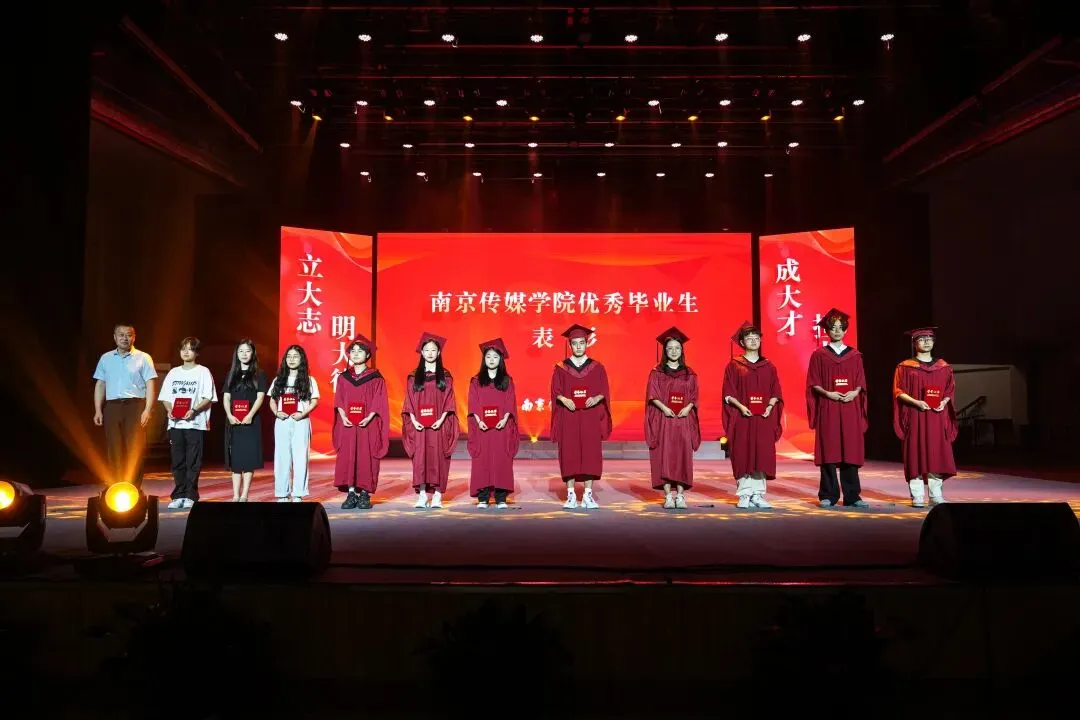 典礼过程中,穿插播放了文化管理学院张嘉轩同学、戏剧影视学院房磊同学、新闻传播学院孙雅茹等多位毕业生学子的优秀事迹,以及播音主持艺术学院、广播电视学院、国际传播学院、电竞学院等部分二级学院优秀毕业生群体成长侧影与青春故事的动人展示。