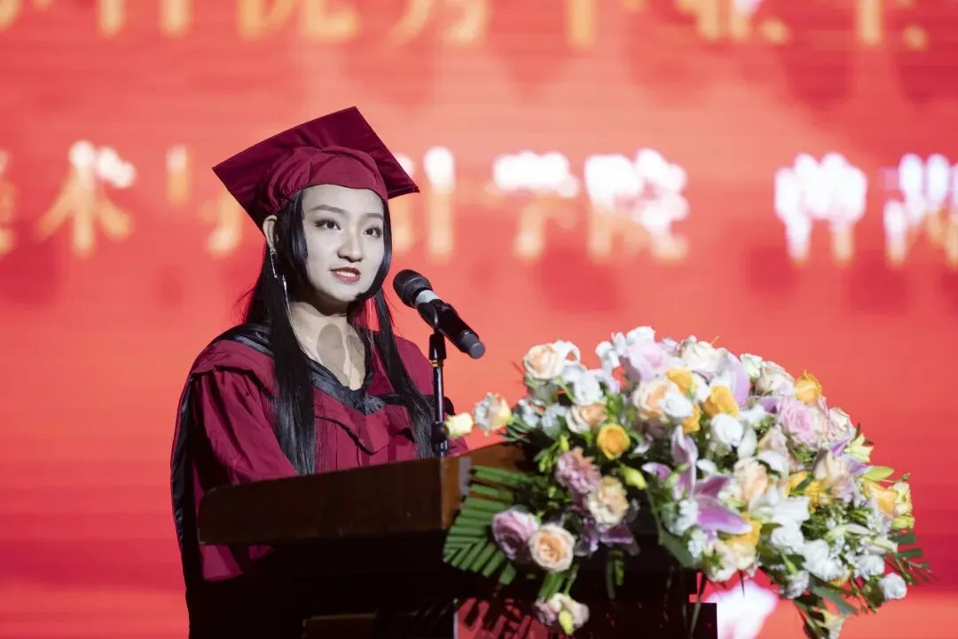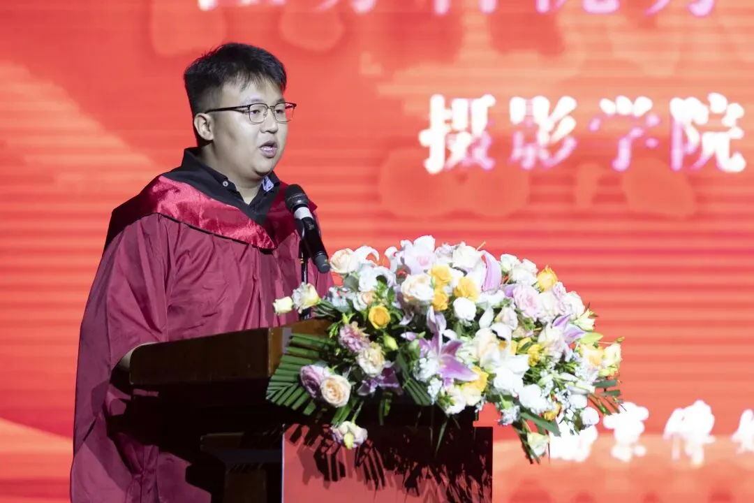 省级优秀毕业生代表、摄影学院王浩林同学、美术与设计学院曾茜毓同学分别发言,感恩母校与老师们的培养,他们在追忆青春时光、回溯成长足迹、讲述精彩故事的同时,表达了向往星辰大海的远大志向和前行姿态。
