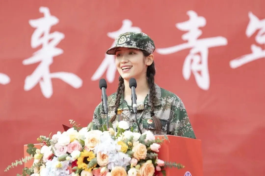 视频致辞后,来自摄影学院的学生代表田伟建上台发言,在进入南传校园之前,他是一名北京武警总队的军人。他向大家分享了他的军旅生活,倡导大家感悟艺术之灵美,觉悟学术之厚重,成就艺术之梦想。来自戏剧影视学院2022级的夏合娜孜则在发言中提到 “学艺先学德,不忘初心,保持热爱。”