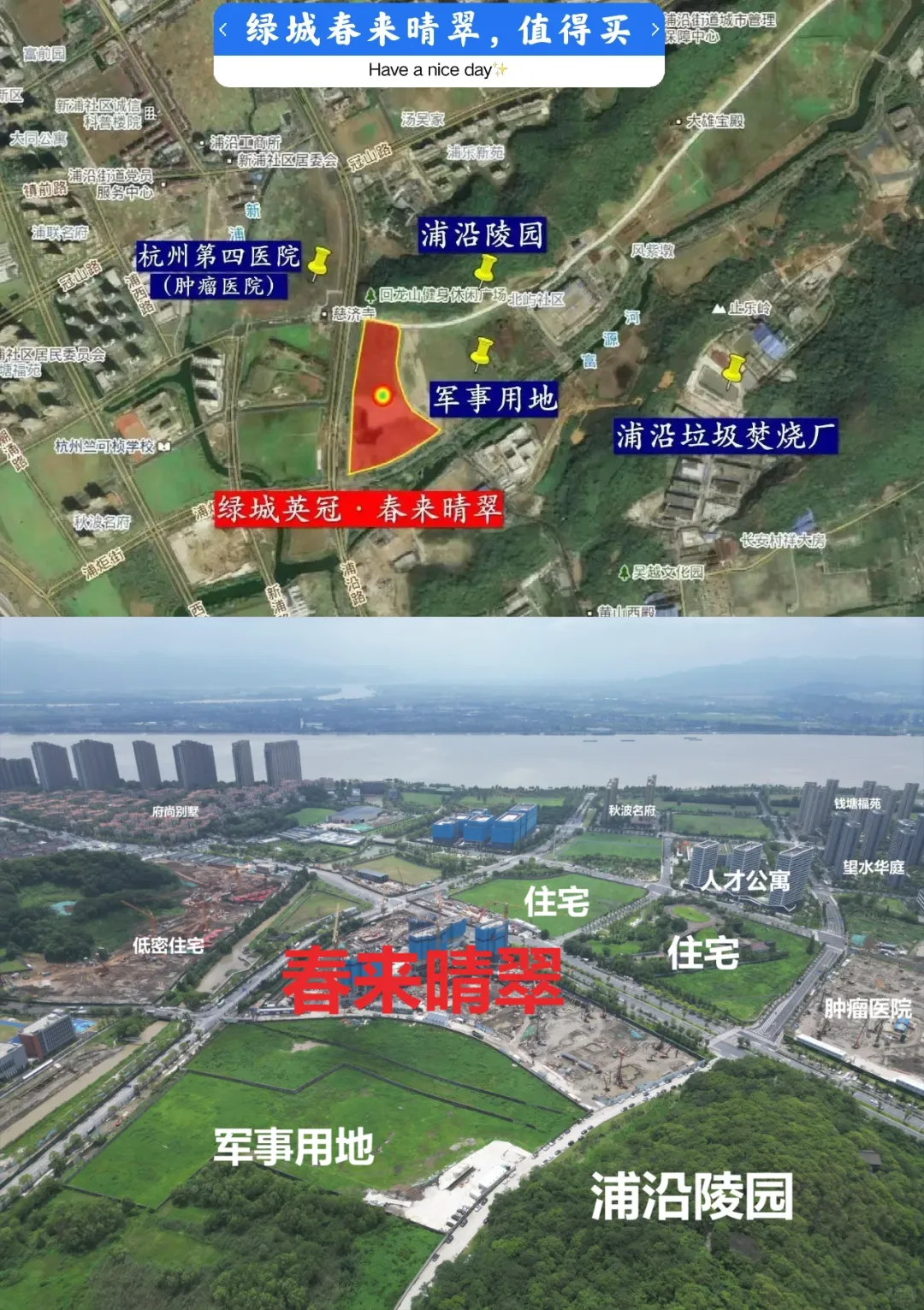 在滨江区浦沿板块,有个新楼盘,叫【英冠绿城春来晴翠】。