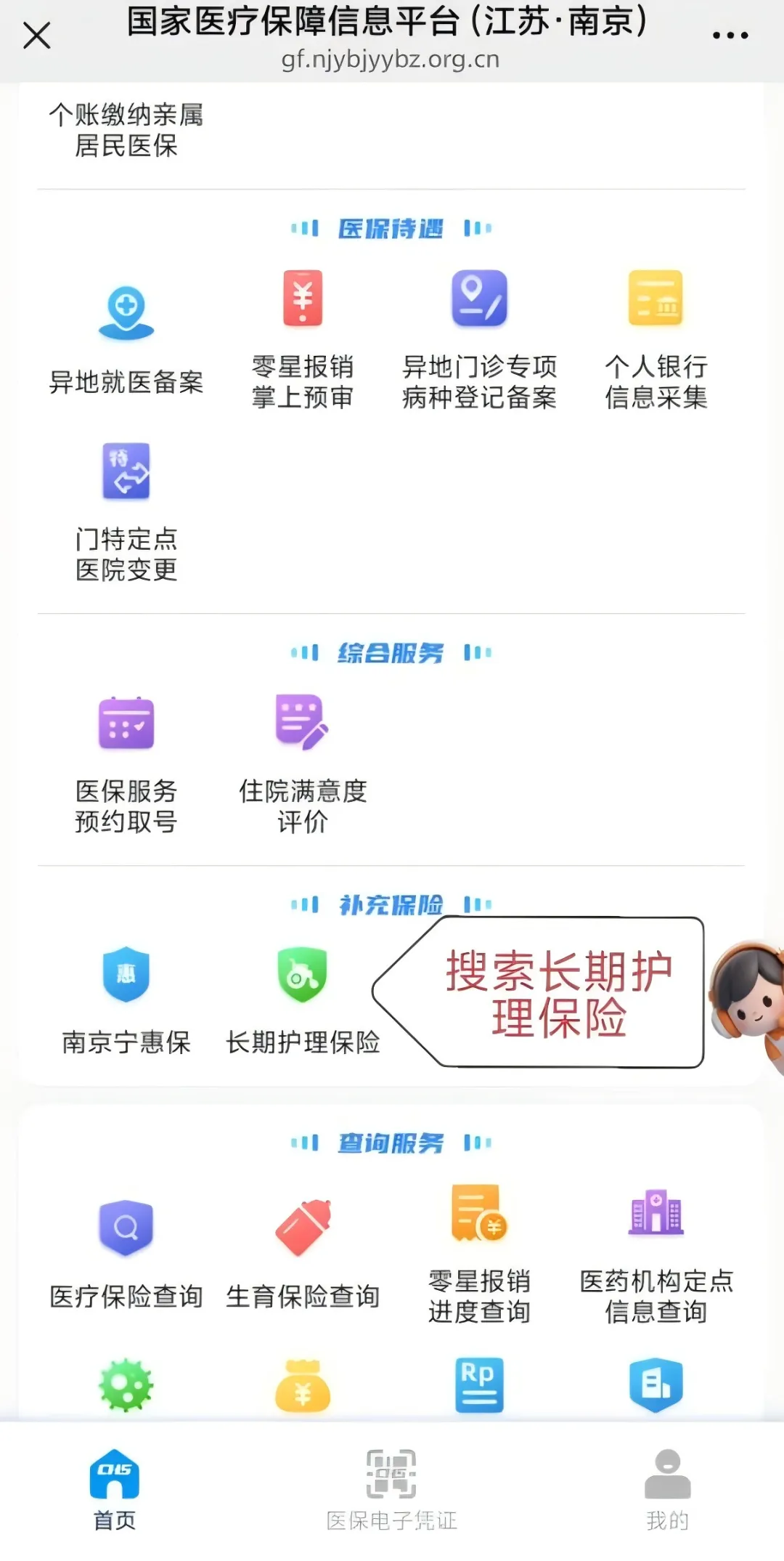 参保身份:参加南京市基本医疗保险(职工医保、居民医保),同步参加南京市长期护理保险;