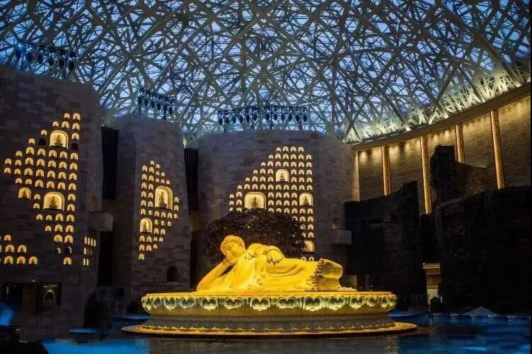 惊叹:【禅行灯光秀】夜赏,感受由G20文艺晚会原班人马打造的光影盛宴。夜幕降临,当拈花塔一层层亮起,仿佛一座大型的琉璃塔晶莹剔透,曼妙的拈花神女天女散花,只一眼,便如惊鸿一瞥、浮生若梦。梵天花海到了夜晚月亮灯亮起,仿如月宫仙境;“佛手拈花”的水幕灯光秀,让人经不住感叹“拈花微笑”的唯美禅境;