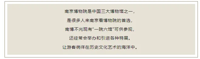 游览:【南京博物院】(游览时间不少于1小时,周一闭馆,如遇闭馆或限流预约不上则改为游览大报恩寺,具体以实际安排为准)是中国内地第二大博物馆、中国三大博物馆之一,中国最早创建的博物馆,是大型综合性的国家级博物馆、全国综合性历史艺术博物馆、国家重点博物馆,采用仿辽代建筑风格,包括大殿、露台和配殿三部分,该馆藏品中以原清宫瓷器为最多,以西南彝族、纳西族、傣族、苗族等少数民族文物为最具特色,以殷墟考古出土实物科学价值最高。