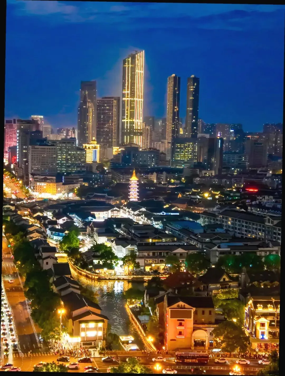 另外一个加分项:远处现代楼宇的灯带+中间一座发光的塔,把“老无锡”和“新无锡”叠在同一张照片里,太出挑。❤️