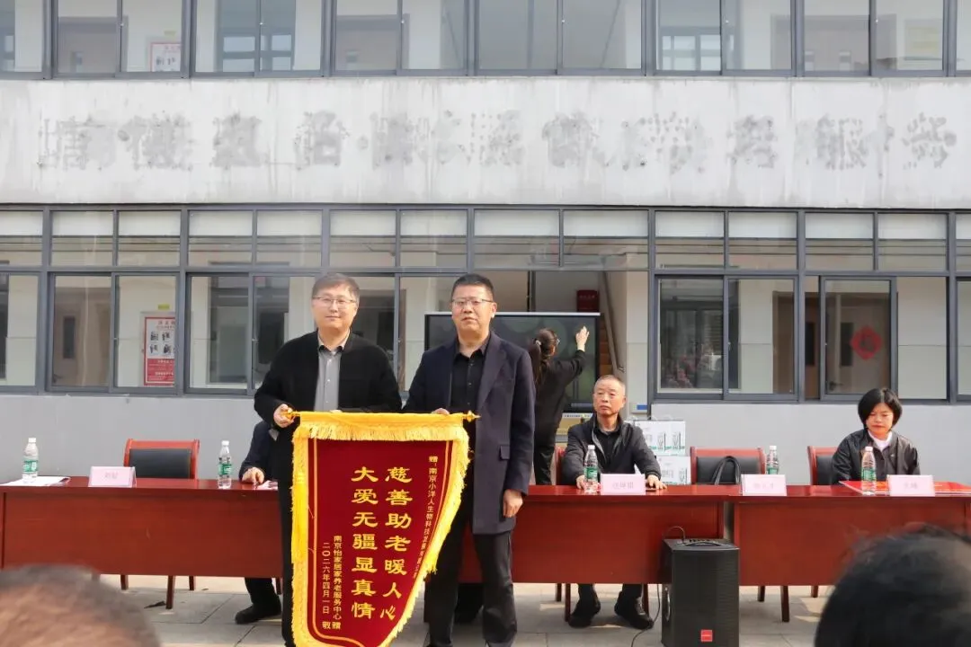 在全场领导、嘉宾及老人们的共同见证下,洪蓝街道党工委委员、办事处副主任许正才向南京小洋人生物科技发展有限公司颁发爱心锦旗,以锦旗铭记善举,向企业情系老年群体、助力基层养老事业的责任担当致以诚挚敬意。随后,区民政局副局长任坤祺向南京小洋人生物科技发展有限公司颁发官方捐赠证书,正式定格这份暖心的公益承诺,对企业践行社会责任、投身助老公益的行为给予了官方认可与高度肯定。