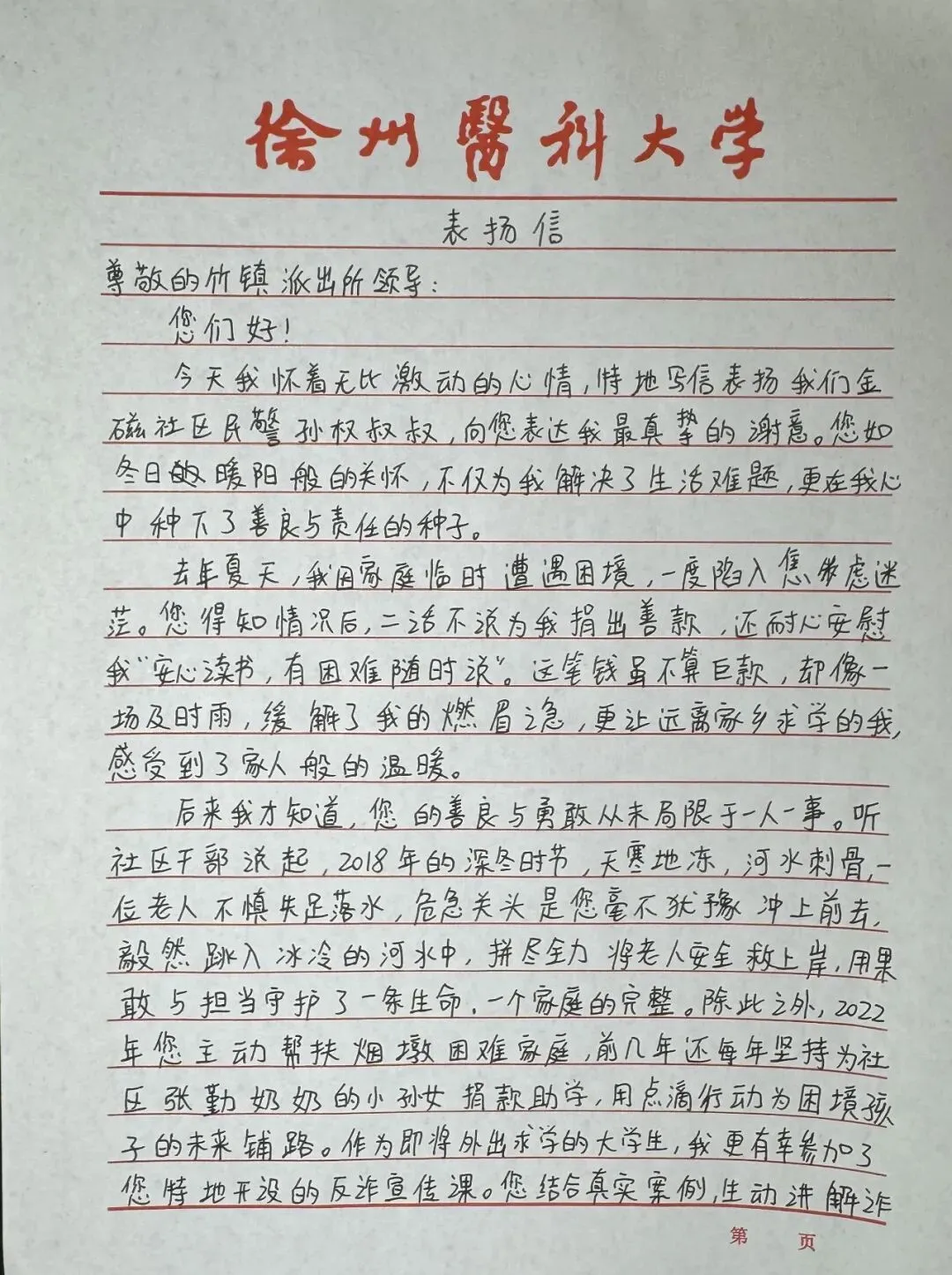 “他如冬日暖阳般的关怀,不仅为我解决了生活难题,更在我心中种下了善良与责任的种子。”近日,江苏省南京市公安局六合分局竹镇派出所收到一封来自徐州医科大学学生小刘的感谢信,字里行间满是真挚谢意。