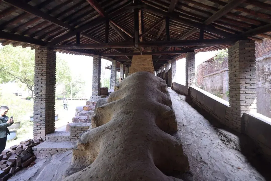 首日上午,队伍抵达徐秀棠大师工作室所在的长乐弘陶艺园。园内一座传统柴烧龙窑被保留下来,内部甬道改造为沉浸式展陈空间。沿窑道深入,烧窑工具、工艺流程与核心原理渐次呈现,紫砂制作的神秘面纱被一层层揭开。