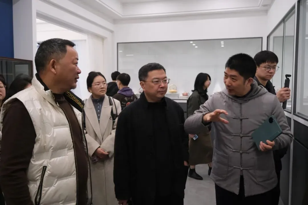 离开矿源博物馆,师生转往宜兴陶二厂陶书局AI造物工坊,调研数字技术与传统陶艺的结合实践。工坊依托自主研发的“供春AI”系统,内置海量紫砂器型库与专业工艺数据库,输入关键词后可在一分钟内完成设计方案生成、器型推演与纹样适配。师生现场观看了从AI生成设计、3D打印坯体,到手工修坯、施釉、窑烧的完整制作流程,对数字技术如何介入陶瓷创作有了具体而真切的认知。