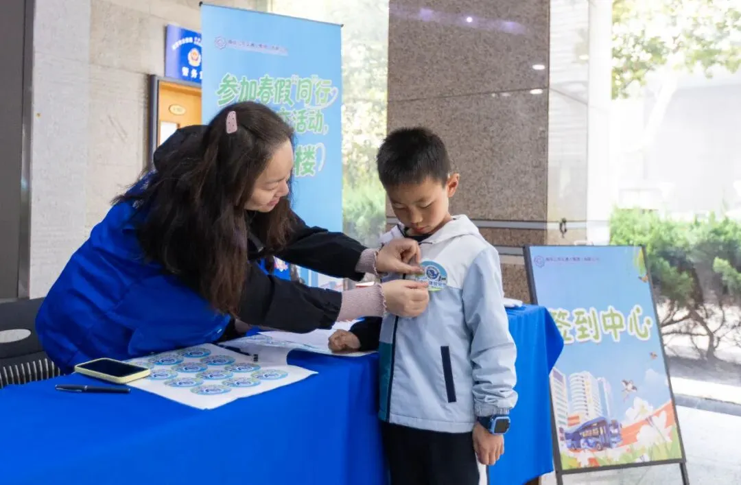 活动全程有志愿者贴心指引,他们手举导视牌,引导孩子们有序入场、分组参观,并为孩子们贴上“小小公交体验官”的贴纸,用温暖的服务为这场研学之旅保驾护航,让孩子和家长都能安心参与、尽兴体验。