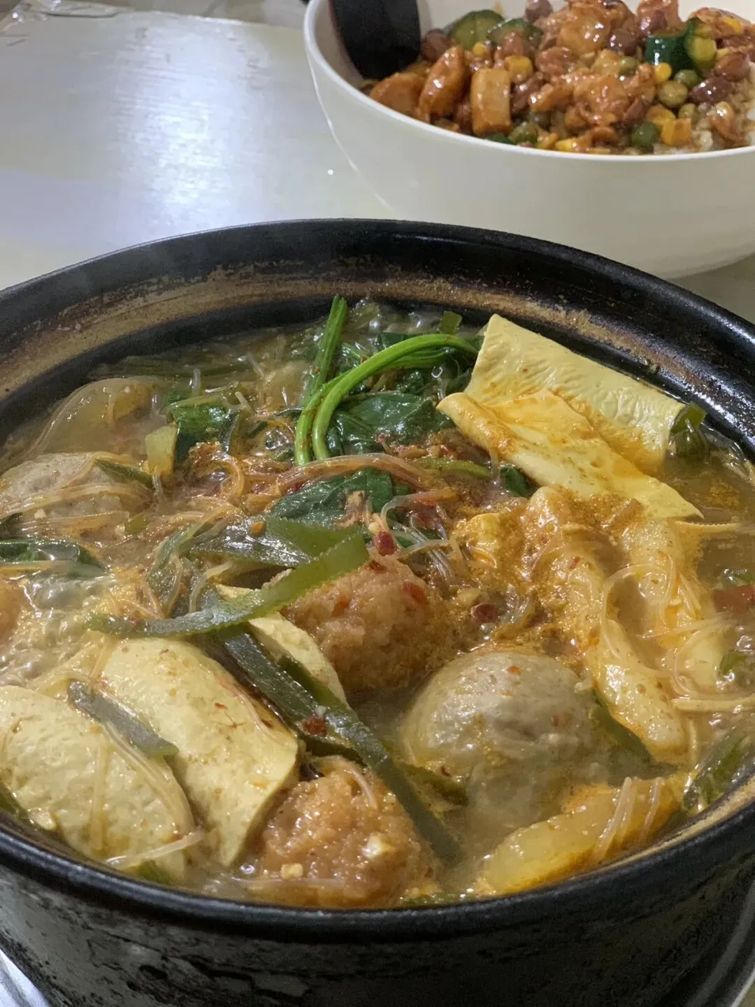 排名第一的是炒酿皮,带着点一份炒酿皮的心情走进了店里,结果进门被冰柜里琳琅满目的菜品和门口熬汤的大锅吸引,最后决定来份麻辣烫~