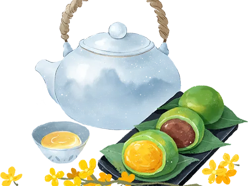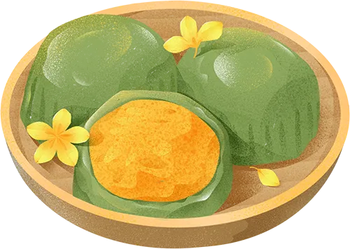 清明时节,江南一带有吃青团子的风俗习惯。青团子是用一种名叫“浆麦草”的野生植物捣烂后挤压出汁,接着取用这种汁同晾干后的水磨纯糯米粉拌匀揉和,然后开始制作团子。团子的馅心是用细腻的糖豆沙制成,在包馅时,另放入一小块糖猪油。团坯制好后,将它们入笼蒸熟,出笼时用毛刷将熟菜油均匀地刷在团子的表面,这便大功告成了。