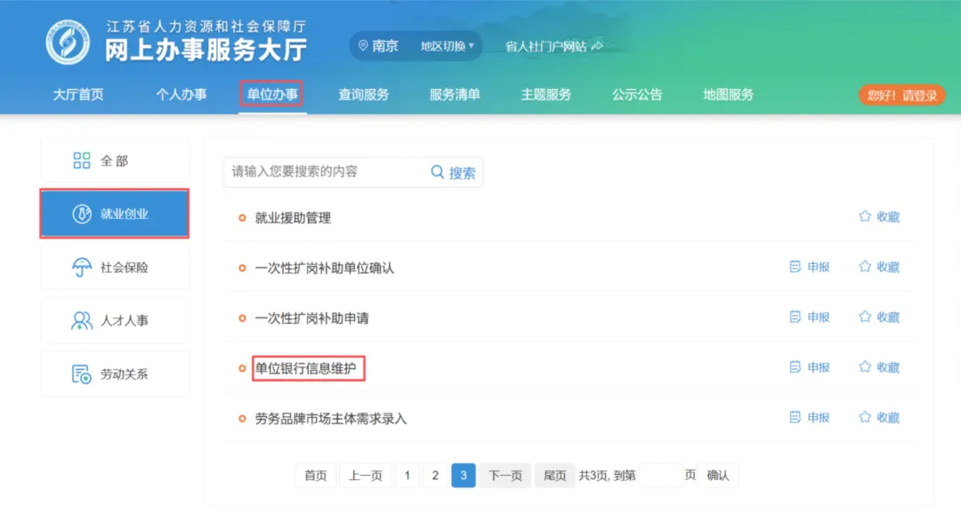 各单位在申请或确认时请仔细核对银行账户信息,若发现有误,请登录江苏人社网上办事服务大厅,通过“单位办事”—“就业创业”—“单位银行信息维护”模块及时修改,以免影响资金发放。