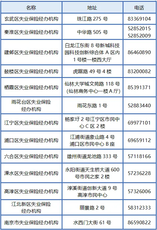 南京市失业保险经办机构联系方式