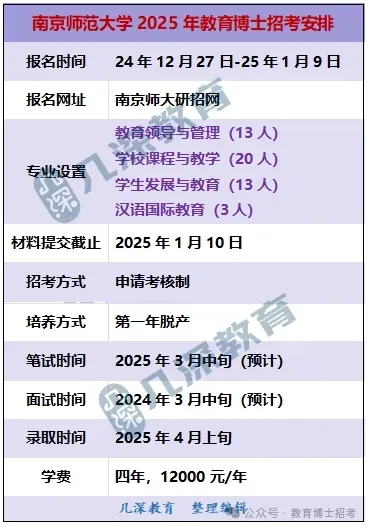 南京师范大学2025年教育科学学院普通招考博士研究生招生实施细则