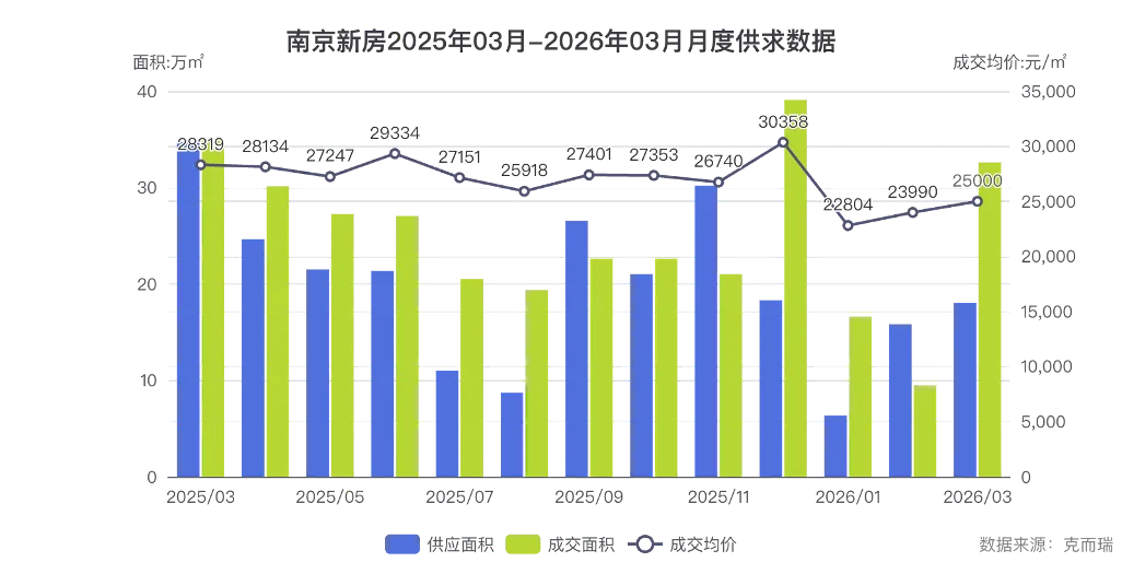 从月度走势看,3月成交面积 32.61 万㎡,已接近2025 年 12 月峰值水平。截至 3 月23 日,南京商品房认购 4389 套,成交4709 套,相比去年同期成交量上涨 11%。这一数据表明,南京楼市"金三"成色十足,市场修复趋势确立。