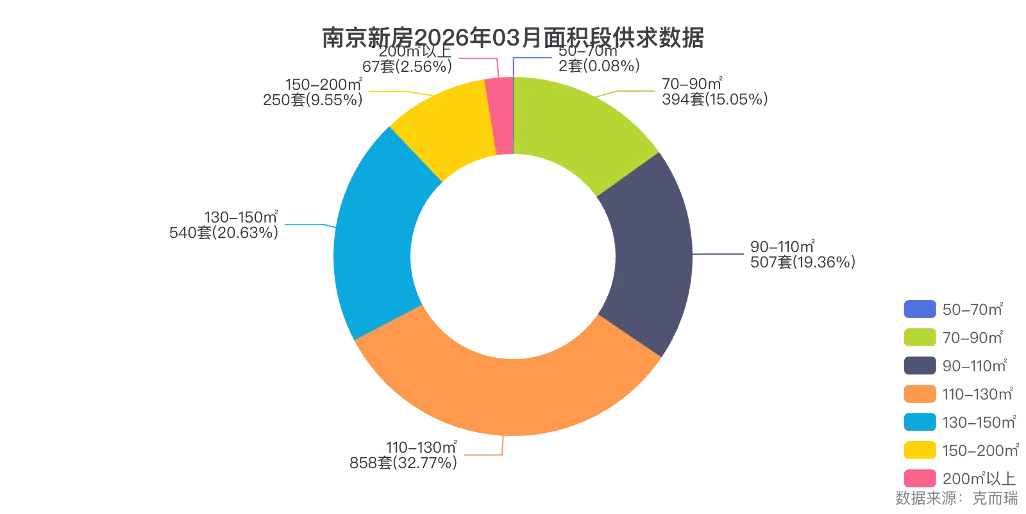 数据解读:据克而瑞数据显示,110-130㎡面积段成交858 套,占比最高,其次为 90-110㎡的507 套。120㎡以上改善型产品成为市场绝对主流,反映南京主城区住宅市场正经历深刻的"脱刚化"转型。购房决策应重点关注核心区域优质资产,其具备较强价格支撑。