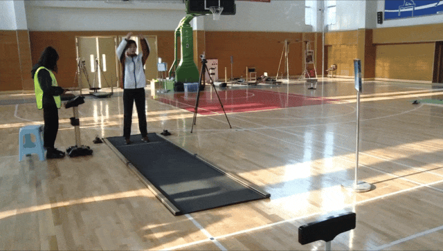 3.考生听到发令音箱“各就位”的口令之后,至起跑线进入站立式起跑状态,听到“嘭”信号正式开始测试。