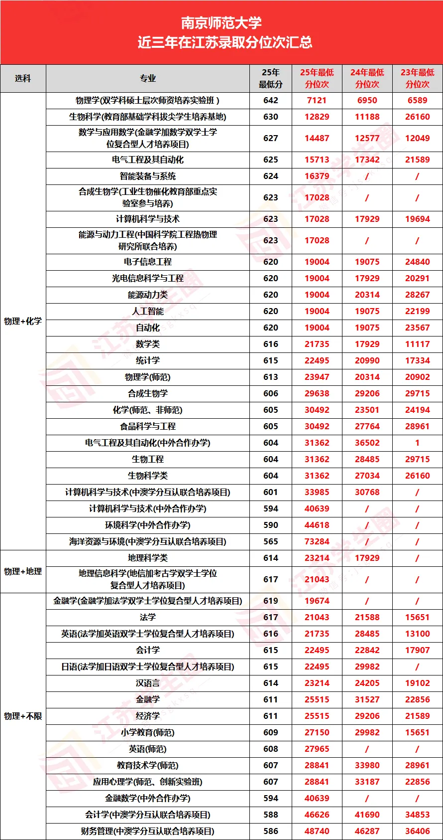 2025年南京师范大学综合评价在江苏省计划招生282人,实际录取282人,招生专业(类)和计划如下:
