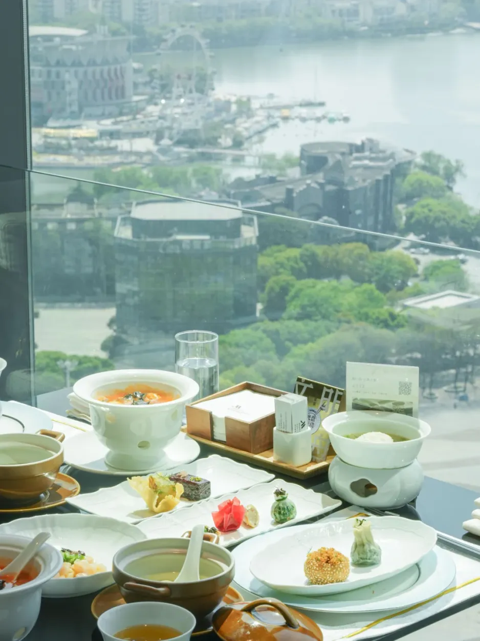 景枫万豪酒店中餐厅,登榜去年《米其林指南入选餐厅》。餐厅坐落于景枫万豪酒店27楼,270度全景落地窗着实震撼,能赏摩天大楼、日落湖景,让人心旷神怡。