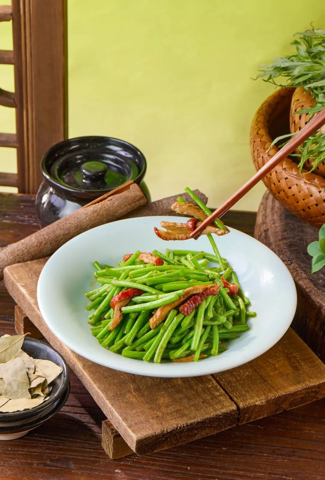 咸肉河蚌烧秧草,河蚌鲜糯弹牙,咸肉脂香醇厚,嫩绿秧草吸饱鲜汁。