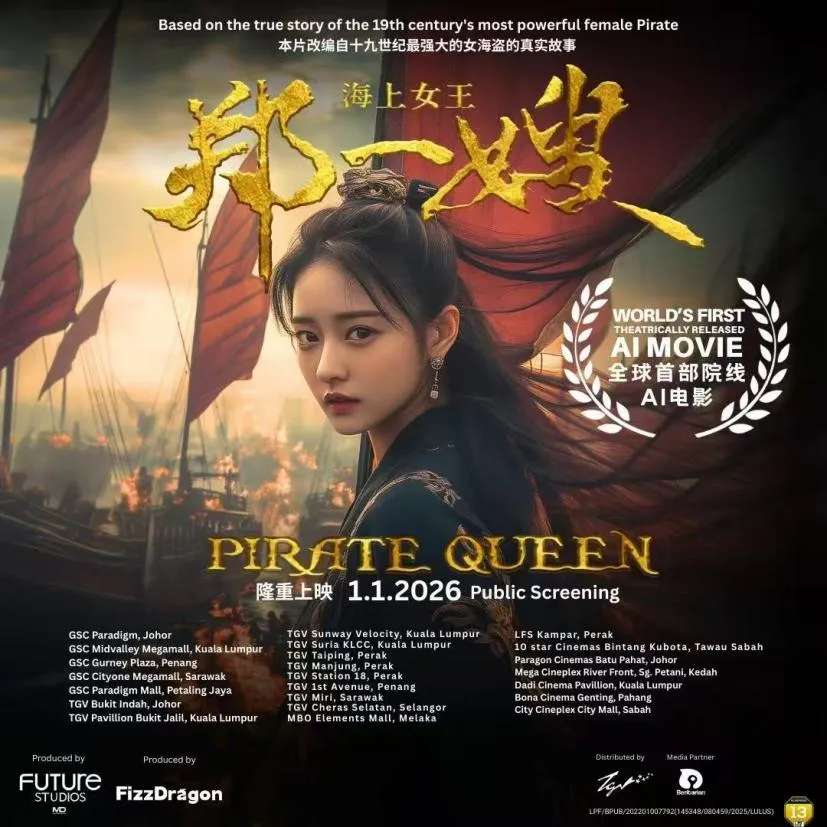 FizzDragon是全球知名AIGC电影内容生态公司,是全球首部获得政府(新加坡政府和马来西亚政府)批准进入院线公映的AIGC大电影《海上女王郑一嫂》的制作公司和出品公司。
