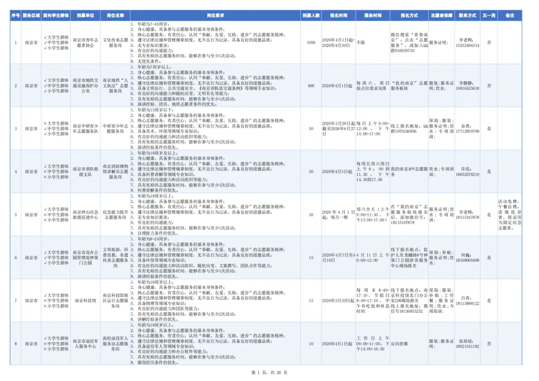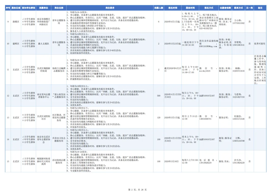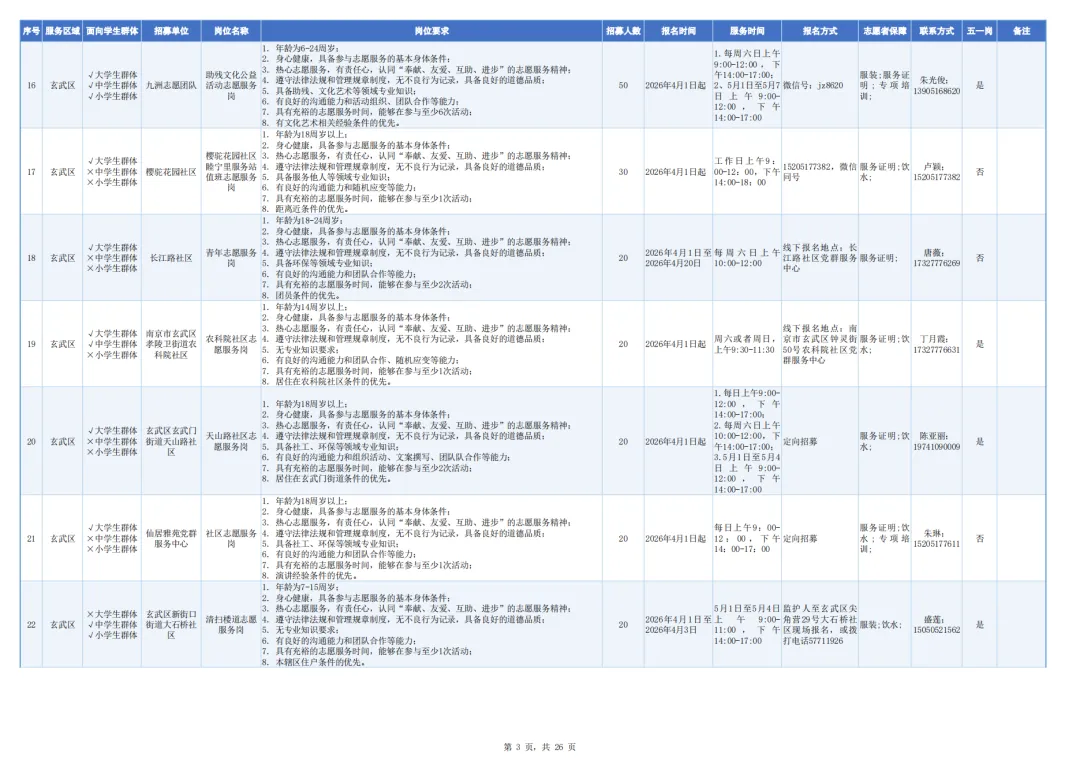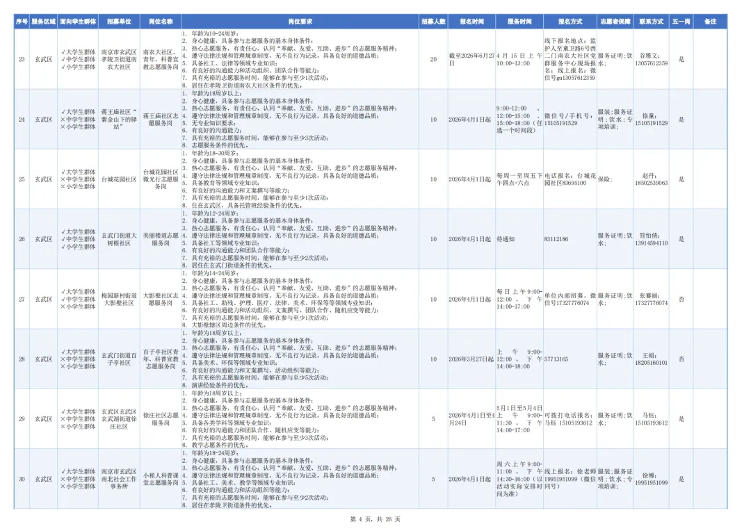 具体时间可联系志愿者招募单位协调