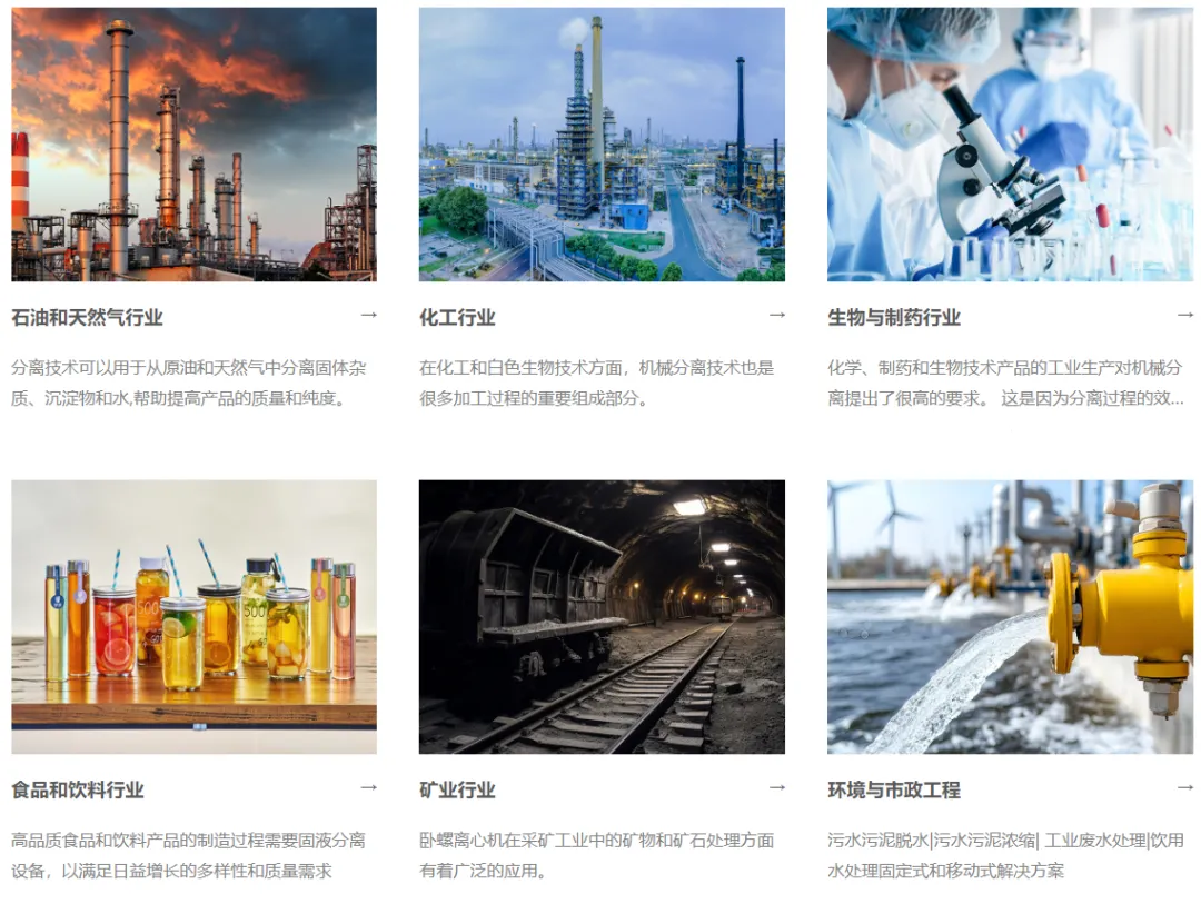目前已经研发出并应用的产品有:高速卧螺离心机、高速三相卧螺离心机、特种浮渣卧螺离心机、特种高速脱油卧螺离心机、污油泥成套设备、电脱盐污水处理成套设备、含油浮渣处理成套设备、污油泥除砂设备和采出液脱水设备等高一批高新技术产品。公司已经有一百多套设备走向市场,广泛应用于中海油、中石化、中石油的各个油田、炼油厂和多个危废处理企业。我们的卧螺离心机还广泛的应用于食品、医药、环保、化工等多个领域。同时也出口到俄罗斯、乌克兰、哈萨克斯坦、朝鲜、越南等国家,为国际市场提供物美值得的中国智造。