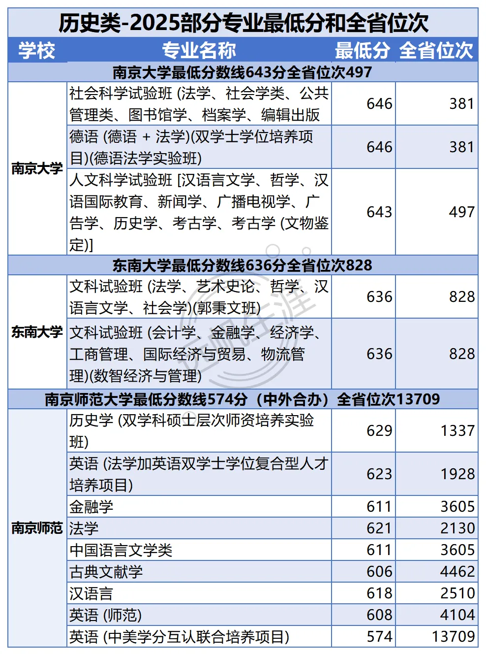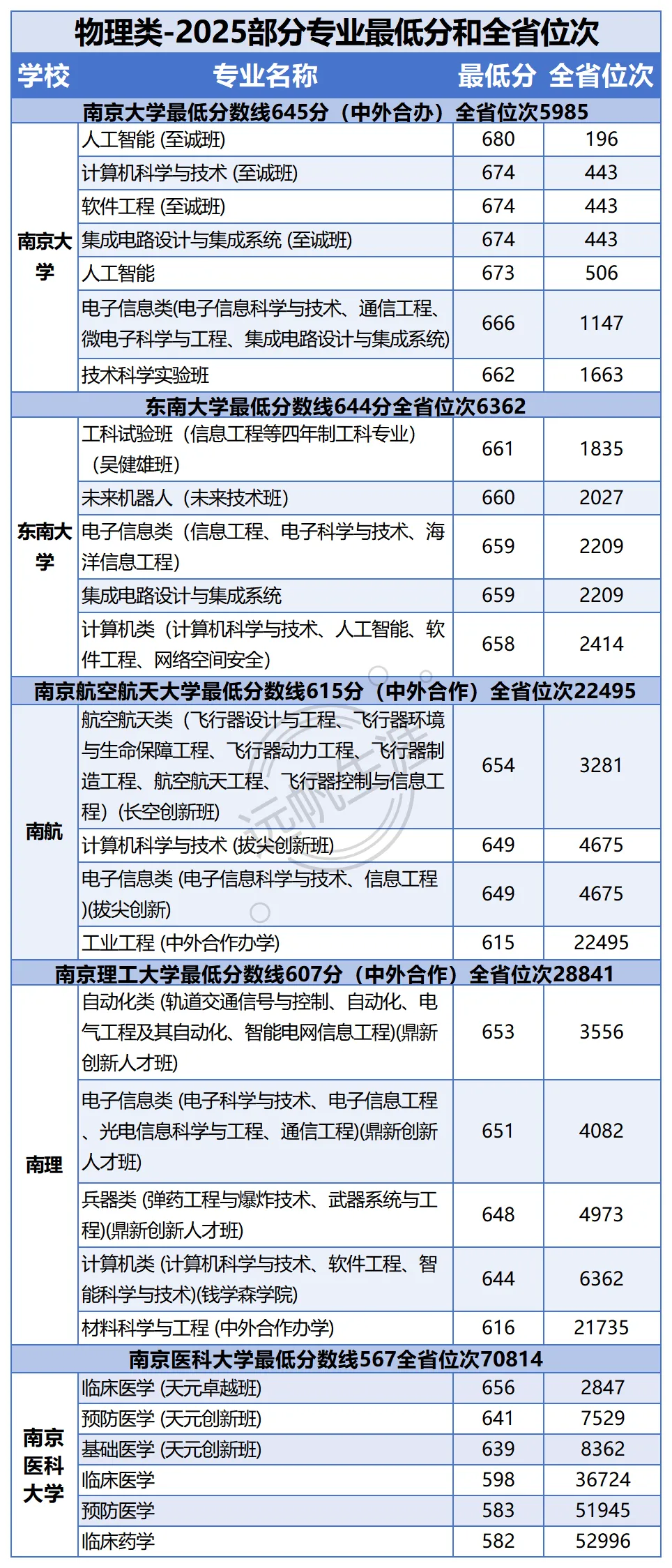 同时也为大家汇总了2025年部分高校(南大、东大等)的专业分和位次,便于更细致地对照目标院校与专业。