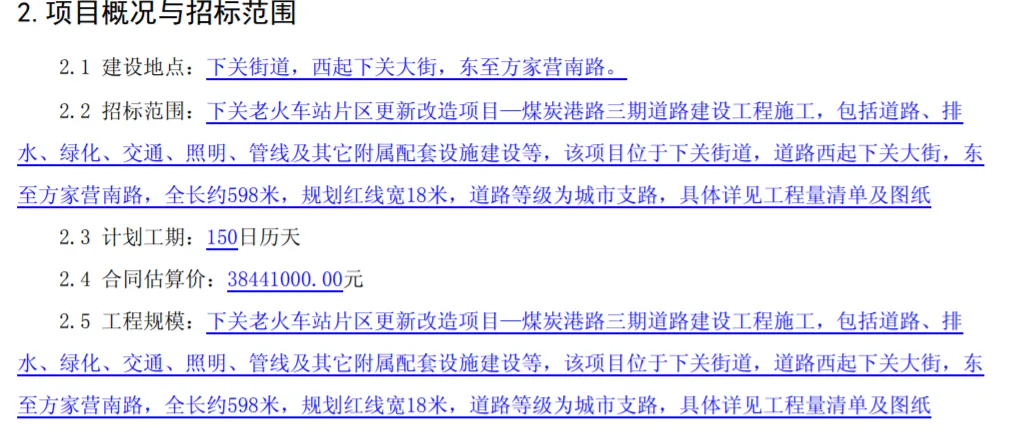 根据招标公告,煤炭港路三期西起下关大街,东至方家营南路,全长约598米,规划红线宽18米,道路等级为城市支路。