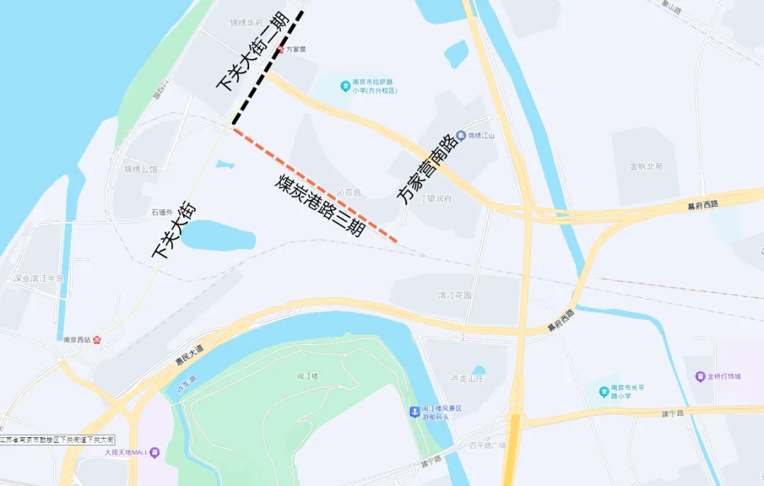 相比煤炭港路,下关大街二期的“段位”更高:道路等级为城市次干路,设计速度30km/h,规划红线宽达36米,全长约832米。