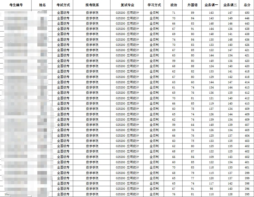 ②一志愿进复试最高分450分,最低分395分;拟录取最高分450分,最低分395分