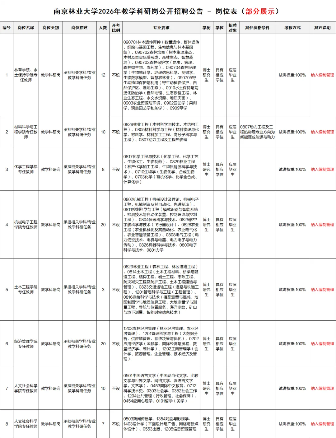 南京林业大学是省教育厅主管的全额拨款事业单位,位于江苏省南京市玄武区龙蟠路159号。为更好地选拔优秀适岗人才,充实人才队伍,优化师资结构,南京林业大学现面向社会公开招聘优秀人才。根据《江苏省事业单位公开招聘人员办法》等规定,现将有关事项公告如下: